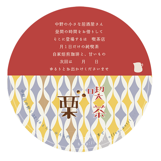 comm : guri coffee, a roaster in Tokyo 's flyer and coaster. guri coffee opens an one-day-cafe once a month, and uses this coaster to let her customers know about next opening of her cafe. Her roast is so gentle and flavorful. |